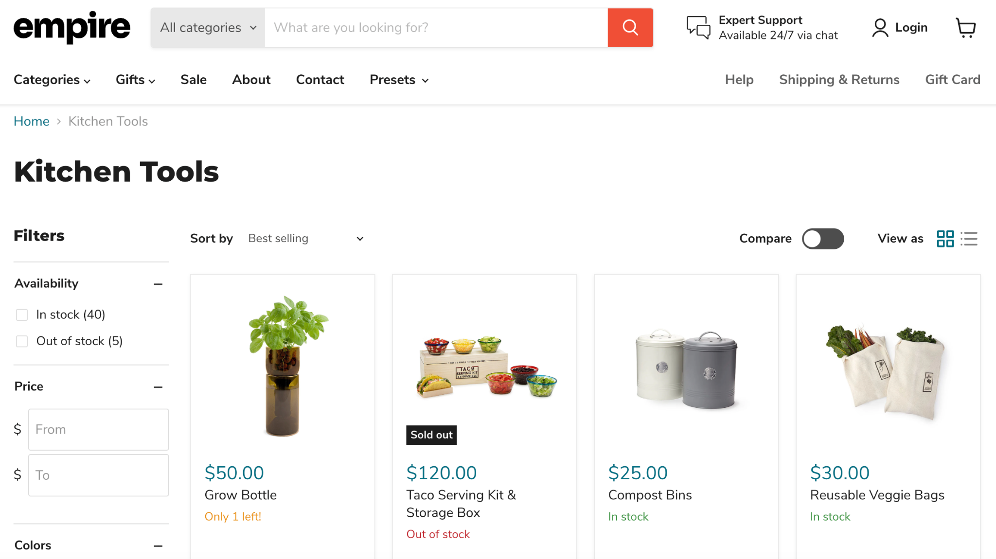 - Görsel Çekicilik: Tema görsel açıdan da tatmin edici; ürün fotoğraflarını büyük ve net gösterir, sayfa tasarımları profesyoneldir. Modern preset’i daha minimal iken Bold preset’i daha çarpıcı renkler kullanarak farklı zevklere hitap ediyor. Genel olarak göze hitap eder, amatör durmaz.